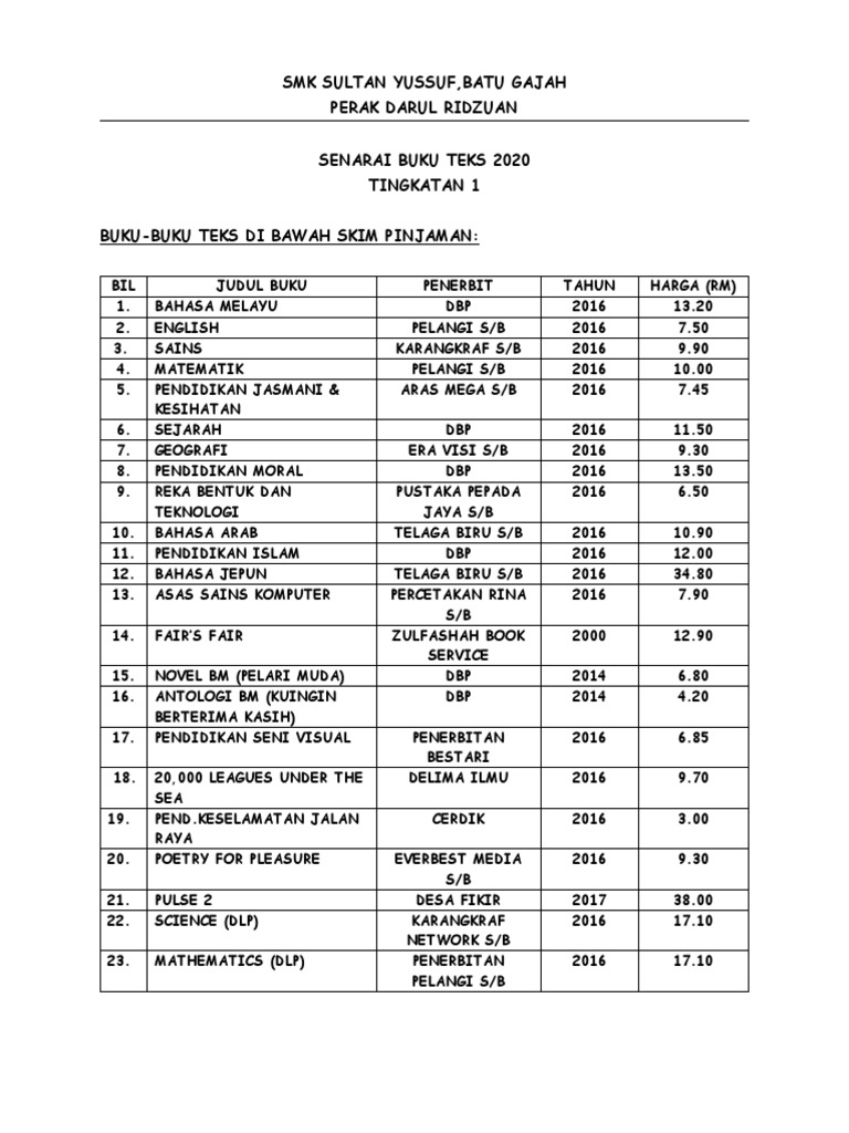 Senarai Buku Teks Tingkatan 1 2018 Leandroctx