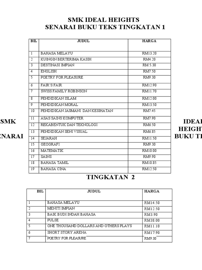Senarai harga buku teks. View flipping ebook version of BUKU TEKS MATEMATIK TINGKATAN 2 published by mujaheed882020 on 2020-06-01.